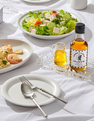 순수하고 정직한 기름, 브로스라팡 신선한 견과 향과 입안 가득 퍼지는 깊은 고소함 브로스라팡 프리미엄 참기름과 들기름은 저온 로스팅과 저온 착유 방식으로 깨 본연의 맛과 향을 그대로 담았습니다. 샐러드나 카프리제 같은 생식은 물론, 다양한 요리에 자연스럽게 어우러져 매일의 식탁을 건강한 깊은 풍미로 채워줍니다.
